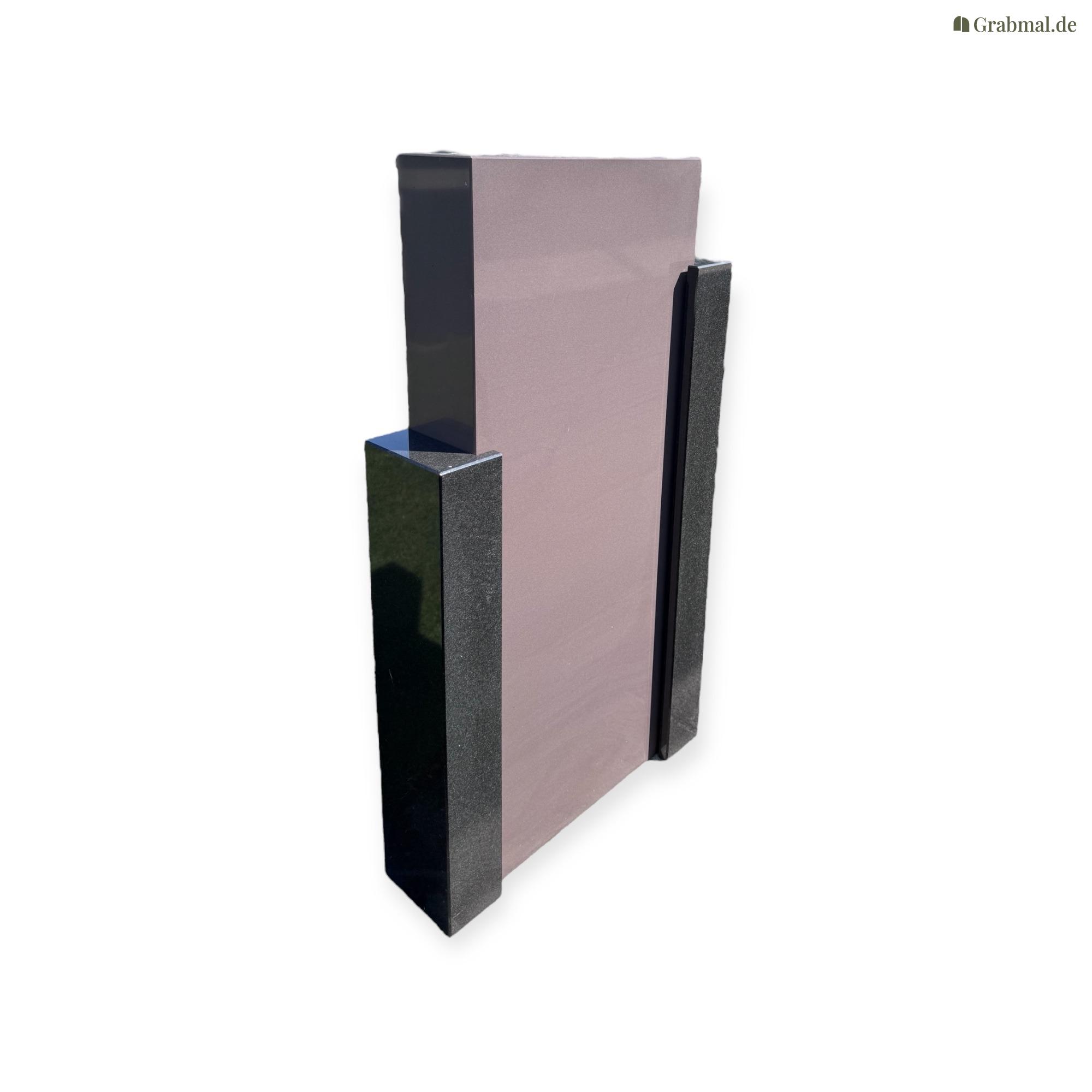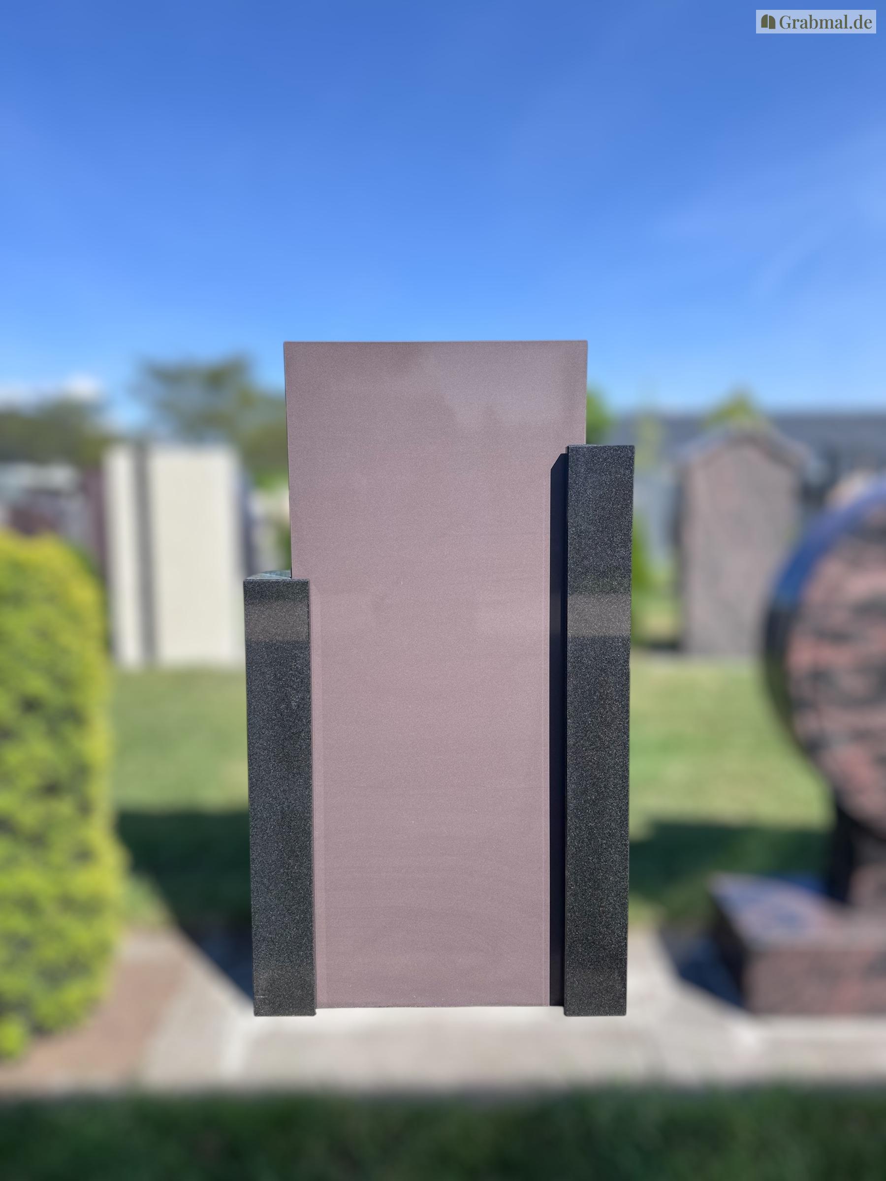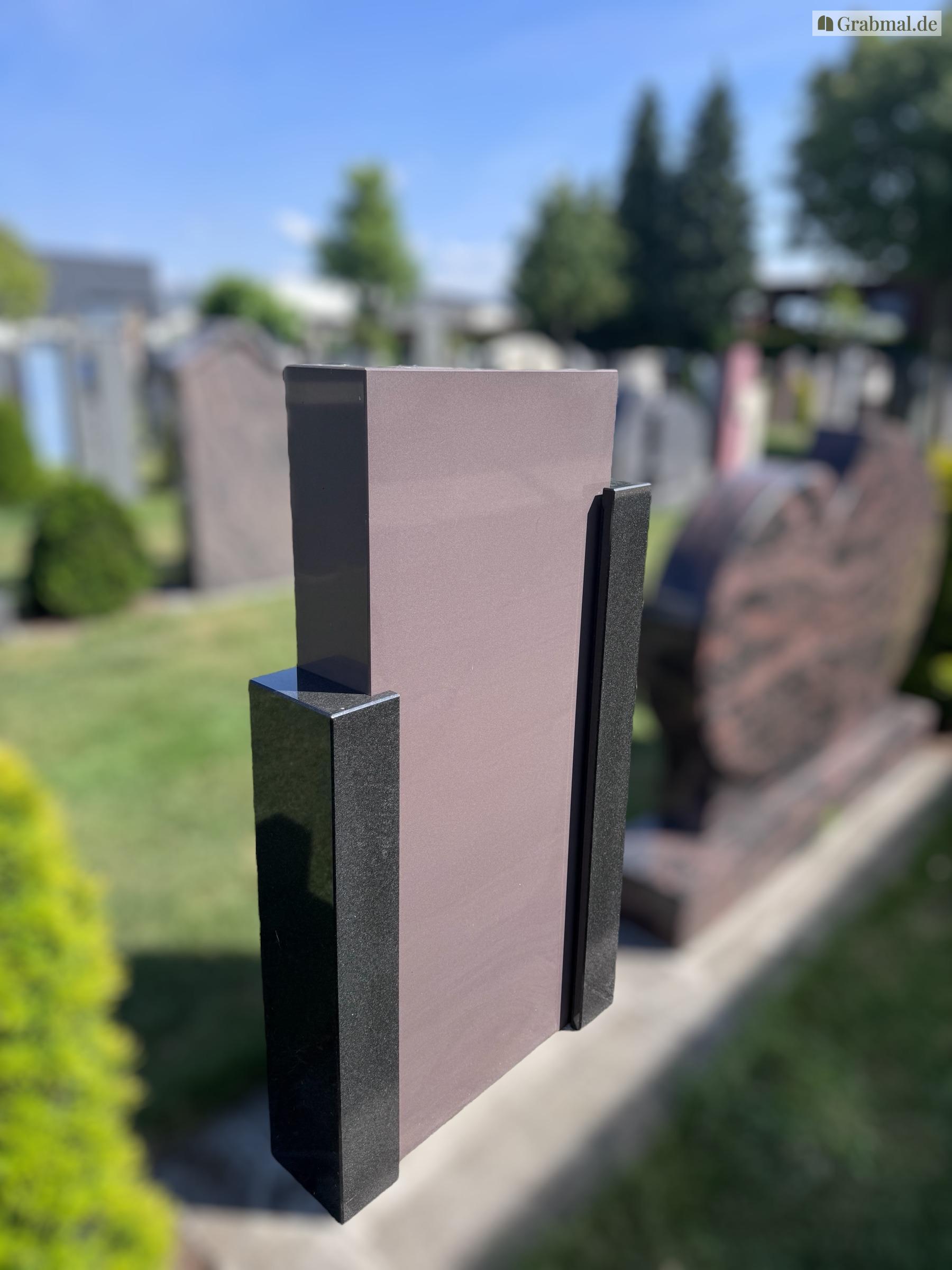 Schöner Grabstein als Materialkombination. Der Quarzit Old Chocolate besticht durch seine ruhige Struktur und wirkt in Kombination mit dem Granit Black premium sehr ausdrucksstark.